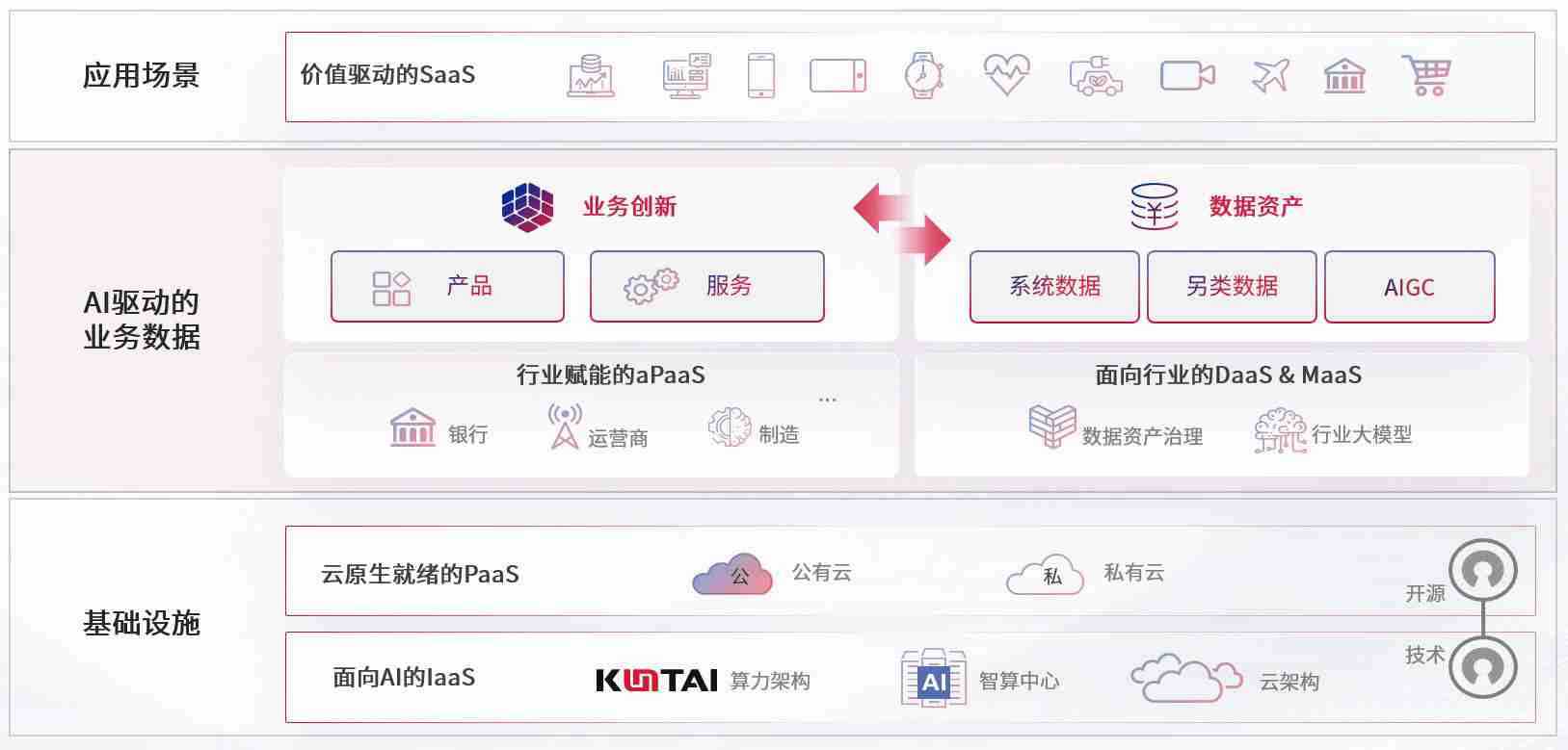 数字时代,,,围绕企业数字化转型的关键要素,,,恒行6数码开创性的提出数云融合战略和技术体系框架,,着力在云原生、、数字原生、、、、AI原生和信创产业上架构产品和服务能力,,,为处在不同数字化转型阶段的快消零售、、、汽车、、金融、、、、医疗、、政企、、、教育、、、运营商等行业客户提供泛在的敏捷IT能力和融合的数据驱动能力,,,,构建跨界融合创新的数字业务场景和新业务模式,,助力企业级客户建立面向未来的核心能力和竞争优势,,,,全面推动社会的数字化、、、智能化转型升级。。。